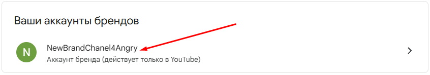 - После создания канала, проверяем аккаунт брендав доступных аккаунтах Google, новый аккаунт должен появиться в списке.